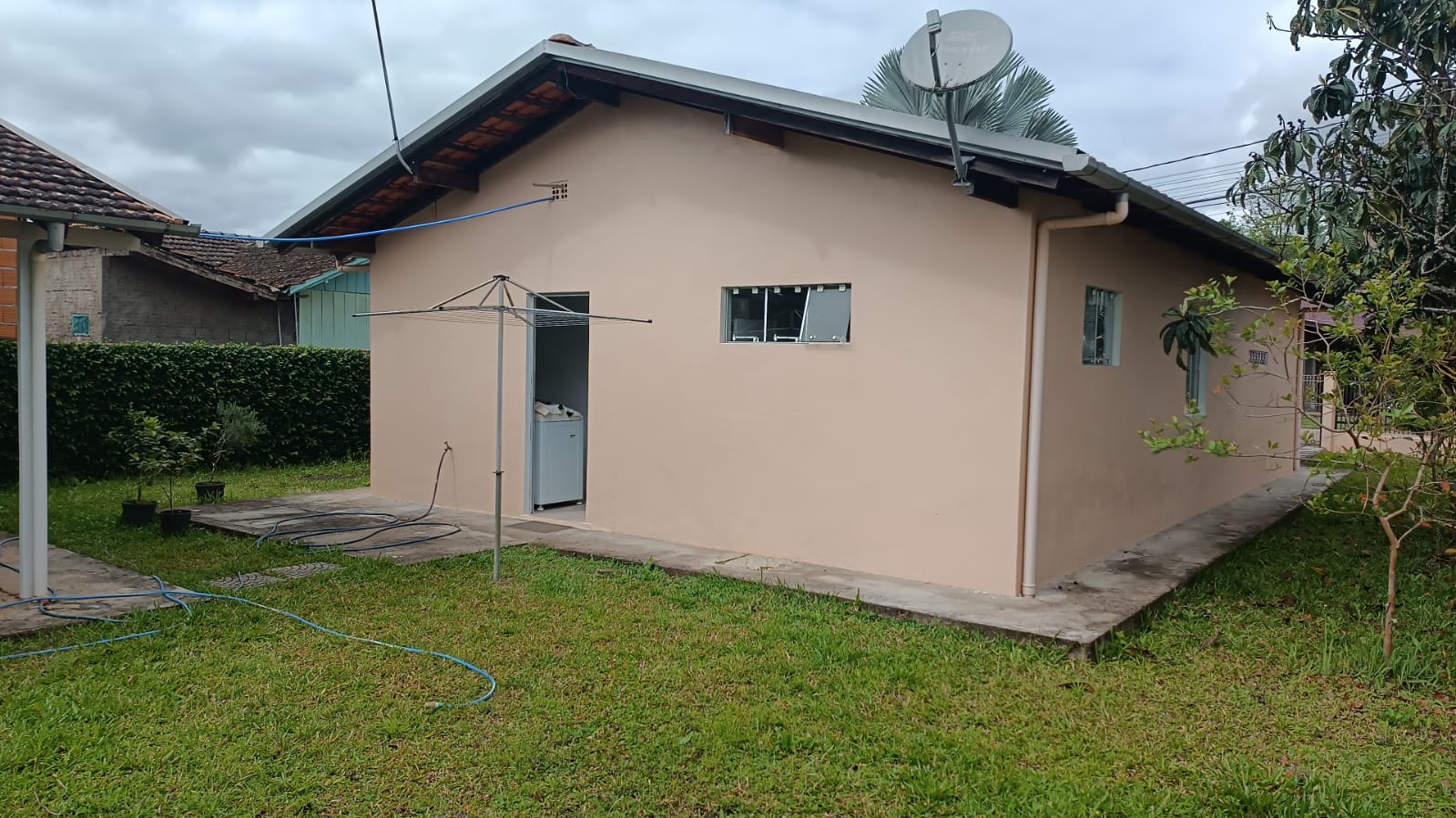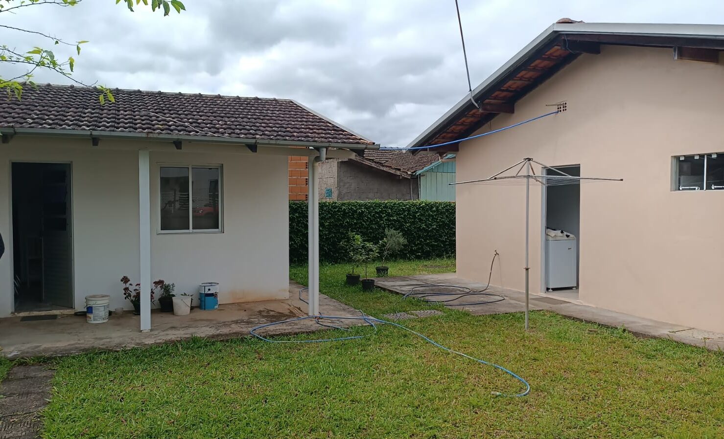 👉 2º casa: 1 cozinha + 1 Lavação + 1 Sala + 3 quartos, sendo 1 quarto c/ suíte + 1 dispensa + 1 garagem.